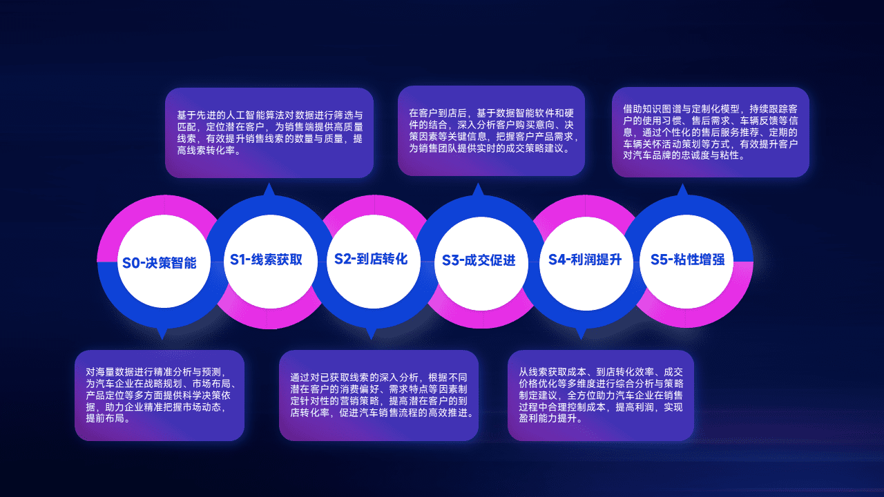 通过拓宽潜在客户来源、、优化线索分配并提高到店转化率,,以增强销售效率。。。。同时,,,,利用线索数据不断优化分析模型,,有效提升转化率,,扩大营销影响力。。